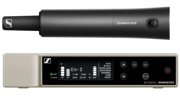 The Sennheiser Ew-D SKM-S base set (R1-6) is a capsule-free handheld wireless microphone.An essential handheld digital wireless set, comprising a fixed receiver and a handheld transmitter for use with a wide range of Evolution Wireless Digital microphone heads (microphone module sold separately).- Digital wireless technology eliminates noise, interference and static- UHF transmission significantly improves range, reliability and scalability- Mobile app simplifies setup and operation while eliminating complicated menus- Automated configuration establishes reliable connections with minimal time and effort- Up to 2,240 frequencies can be selected to support 24 wireless systems per frequency rangefrequencies- Lithium-ion battery provides up to 12 hours of operation (up to 8 hours with AA batteries)- 56 MHz band supports up to 90 channels- Preserves every detail of the most dynamic performance with 134 dB dynamic range for transmitters