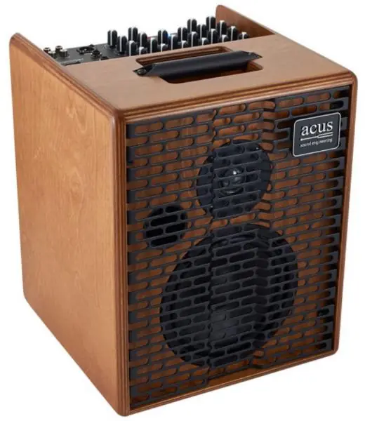 Compact, comprehensive and effective, strong>ACUS One Forstrings 6T (Wood) is a bi-amplified 90+40 watts combo amplifier for acoustic guitar and microphone, featuring separate controls for each of three channels (gain, volume, 3-band EQ, effect level). Two channels offer XLR and instruments inputs, third channel only instrument input. There’re also stereo RCA inputs/outputs (with dedicated input and output level controls, effect return level and master volume.