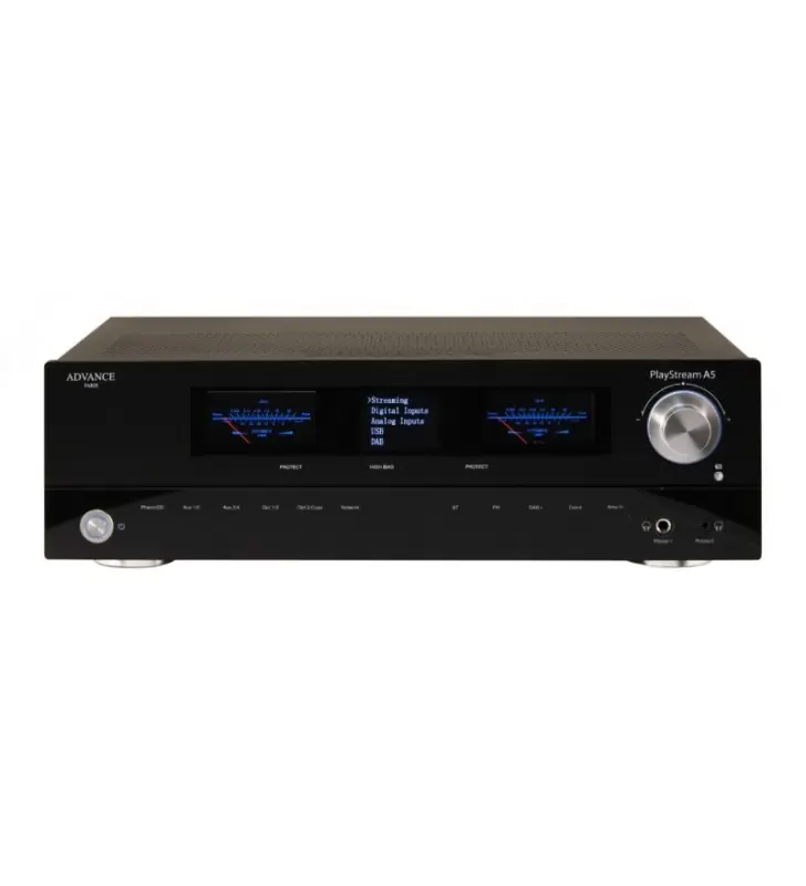 De PlayStream A5 onderscheidt zich ook door de praktische éénknopsbediening, waarmee onder andere volume, ingangskeuze, toonregeling voor lage en hoge tonen (met ByPass!), en balans geregeld kunnen worden. Er is voorzien in twee aansluitingen voor een hoofdtelefoon (3,5 en 6,3 mm jack). Een systeemafstandsbediening hoort bij de standaarduitrusting.