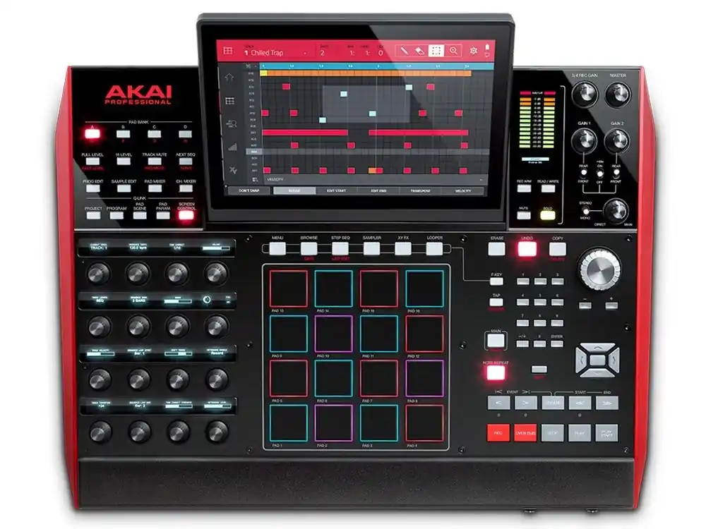 De Akai MPC X is een standalone MPC die een practhig full colour 10,1 “multi-touch scherm heeft. Daarnaast zijn de 16 aanslaggevoelige RGB pads verbazingwekkend responsief. Voor een complete standalone ervaring zonder computer heeft de MPC X heeft ook twee USB slots die kunnen worden gebruikt voor MIDI controller connectiviteit. Voor meer creatieve optredens, zijn er 16 touch-sensitive 360-graden toewijsbare knoppen voor het nauwkeurig automatiseren van individuele QLink parameters. Boven elk van deze QLink knoppen is een hoge-resolutie OLED display met gedetailleerde informatie voor de afzonderlijke parameter.Kenmerken Akai MPC X standalone MIDI Controller