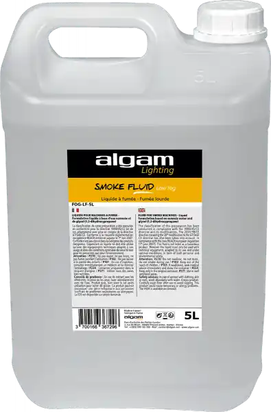 Algam lighting FOG LF 5L is heavy smoke liquid.Heavy smoke, or “Low Fog”, creates a compact, ground-level smoke carpet with excellent stability and slow dispersion. Canister of 5 liters.