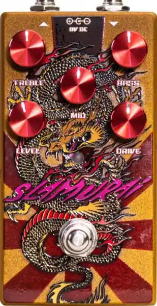 With the Slamurai, Allpedal have digged further into the potential of a pedal to replicate the natural overdrive of an amplifier. Extremely dynamic, responsive and harmonically rich, it produces a magnificently textured overdrive ranging from clean boost to modern drive.As with all their effect pedals, Allpedal took special care in the Slamurai’s esthetics with its metallic finish, sophisticated embossed artwork and anodized knobs.