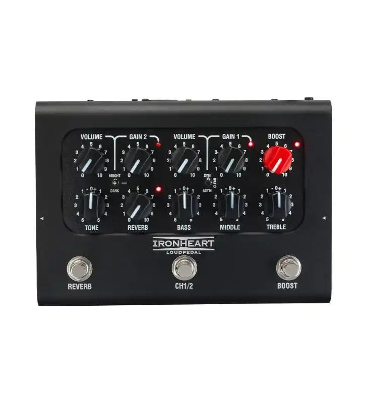 De Black Country Customs Ironheart Loudpedal van Laney is een samen met Martin Miller ontwikkeld pedal versterker. Dit compact pedaal bevat een 60-watt eindtrap die je direct op iedere gitaar speakerkast kunt aansluiten. Je kunt hem eventueel ook als preamp gebruiken met de Line Out of direct op de PA door middel van de XLR-uitgang. Op de XLR uitgang heb je de keuze uit 2 door Martin Miller uitkozen IR’s die ook te vervangen zijn via de applicatie van Laney.