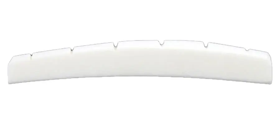 Slotted bone nut with radiused bottom for Fender ®, 1-11/16″ x 1/4″ x 1/8″, 15 pcs. bulk package.