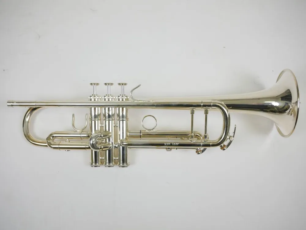 Van Laar Bb trompet model B7 verzilverdDe B7 is een ware alleskunner: de geringe luchtweerstand en de gemakkelijke intonatie nodigen als het ware uit om te spelen met de luchtstroom en te experimenteren met de sound. Voor sterke blazers opent deze trompet bijna onbegrensde mogelijkheden wat betreft dynamiek en klankkleur.ML boring: 11,7 mmStandaardgewicht ventielblockHandgehamerde beker uit één stuk plaatBekermateriaal: messingBekerdiameter: 122 mm.