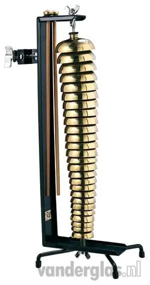 Freestanding / mountable26 messing bells van hoge naar lage toonhoogteBreed sound spectrum Zwart stalen stand met beklede poten