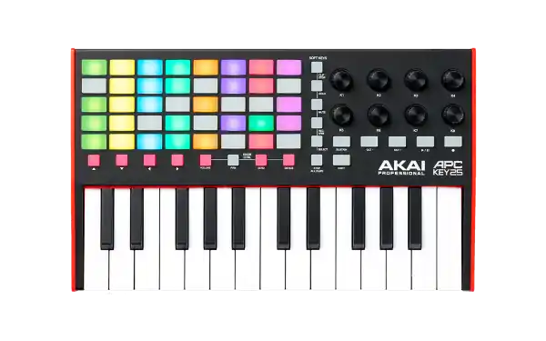 The APC Key 25 Mk2 is the perfect all-purpose MIDI master keyboard for creating and performing anywhere with Ableton Live. Combining a 25-note keyboard for easy composition and a 40-pad backlit RGB pad array for launching clips or full scenes, this controller is perfect for bringing all your melodies and compositions to life.Stay focused on your performanceGet advanced control over your Ableton Live session with the next-generation 40-pad 5×8 matrix, offering superior playing comfort and precise visualization of the clips in your Ableton session thanks to the wide colour palette available. Whether you’re in the studio or on stage, the brightly coloured, scrolling RGB matrix gives you precise and efficient visual feedback, allowing you to focus on your song.Compact and ergonomic, the APC Key 25 Mk2 lets you trigger loops, samples and individual melodies as well as entire scenes for breathtaking performances. Even with your most demanding projects, the 40 backlit pads in the 5×8 matrix faithfully reflect the clips in your Ableton session, so you can stay on top of your performance.Make composing easyThe APC Key 25 Mk2 is a versatile controller with an all-new 25-note keyboard from the MPK Mini Mk3 master keyboard series, featuring precise response and excellent dynamics. With this keyboard, creating melodies, soundscapes or solos with the virtual instruments that come with the APC Key 25 Mk2 has never been easier or more intuitive. To modulate the active range and your playing at a glance, this APC Key features a pair of octave buttons, complemented by a sustain button.With its signature Ableton Live keyboard and clip launch workflow, the APC Key 25 Mk2 is definitely the ideal controller to bring originality to all your compositions.A simple interface focused on creationThe APC Key 25 Mk2 puts everything you need to enjoy an intuitive and creative experience with Ableton Live at your fingertips. With the APC’s eight 360-degree rotary encoders, you can adjust a wide range of parameters such as volume, panning, effect send inserts, reverb level, and more in an instant, and efficiently control your various automations!With Device mode, the 8 encoders of the APC Key 25 Mk2 are automatically assigned to the 8 macro controls selected in Ableton Live. For maximum efficiency, you can control multiple parameters simultaneously via a single encoder, and have programmable soft keys for quick access to Solo, Mute, Stop and Record Arm functions.A complete software package with Ableton Live LiteThe APC Key 25 Mk2 is designed specifically for Ableton and comes naturally with Ableton Live Lite. This powerful DAW is a true reference in the world of production, allowing you to launch clips and comes with numerous virtual instruments, mixing effects and samples, while allowing you to record and mix audio and MIDI files. Ableton Live Lite offers all the tools you need to turn your musical ideas into a complete production.In addition to this quality DAW, the APC Key 25 Mk2 comes with a selection of virtual instruments developed by AIR Music Technology: the powerful AIR Hybrid 3 polyphonic analog synth plugin, the AIR Mini Grand stage piano plugin, and the AIR Velvet vintage electric piano plugin.