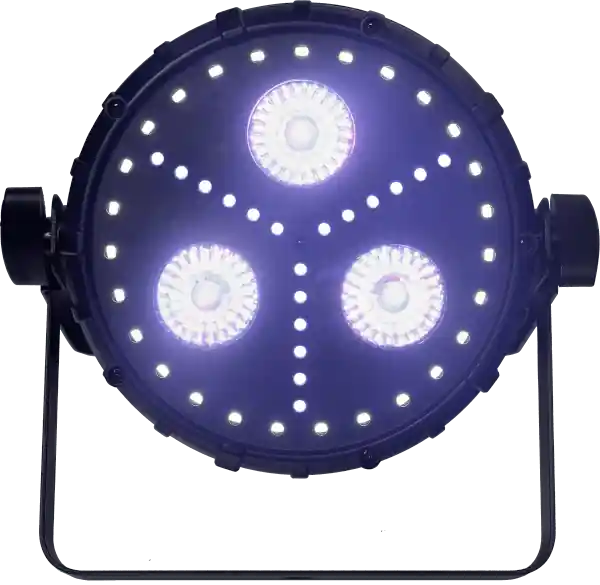 the Shirka is a led par from Algam Lighting.The SHIRKA is a 3 in 1 multi-effect LED PAR integrating the DMX protocol. It has many internal programs with 3 types of effects: star, strobe and wash. In automatic and musical mode (with integrated microphone), the SHIRKA is a complete and compact solution. The management of the DMX protocol will allow it to be easily integrated in a set of lights. Delivered with its infrared remote control.