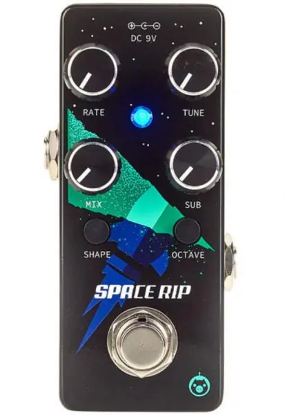 PIGTRONIX Space Rip PWM Guitar Synth compact effect pedal for guitar and bass, is an analog synth pedal featuring pulse width modulated (PWM) sawtooth and square wave voices in multiple octaves. A state-of-the-art tracking engine allows Space Rip to keep up with your fastest single note lines, replicating both pitch and dynamics.Sounds like tearing the fabric of spacetime in half. Pulse width of the square and sawtooth waveforms produced by the onboard VCO is kept in a state of flux, generating constant harmonic motion controlled by the Rate knob.The Sub knob adds an additional voice one octave down from the input signal, while the Octave switch drops the entire synth down an additional octave, producing a devastating amount of pure analog synth bass.