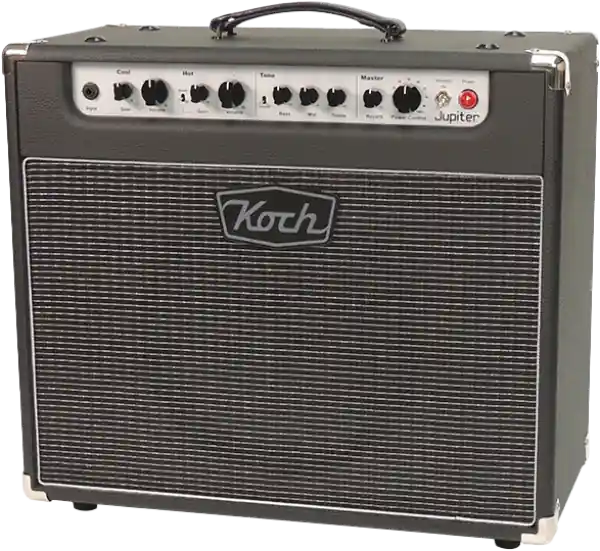 The Koch Jupiter is a 45 Watt boutique, vintage style combo amp, that is equally at home in live, recording or rehearsal sessions. This unique tone classic features independent volume and gain controls for both the Clean (Cool) and overdrive (Hot) channels. The overdrive (hot) features a Boost which gives the Jupiter three channels. The shared EQ section (Bass, Middle, Treble) can be further sculpted with the Contour Switch, allowing either a warm, mid-rich vintage tone, or a scooped, more modern and open sound.The Koch Jupiter combo comes with a two button footswitch with another unique feature. The left button switches between the Cool and Hot Channel, and the right button can be set to turn either the Channel 2 Boost on/off, or the Reverb on/off, allowing you full control over your sound?right at your feet!Further features of the Jupiter include the Dimmer Control which acts as an attenuator to allow you real tube saturated tube tone at any volume, front mounted Reverb control, 4/8/16 Ohm Speaker Outputs and Speaker Emulated Direct Output with Passive Filtering. Finally, there is a buffered effects loop to allow the addition of your favorite pedals or effects units.The Jupiter was designed as a player’s amp, with as much tonal control and flexibility as possible in a compact, lightweight combo. From the bell-like clean tones to the punchy, yet dynamic overdrive channels, the Jupiter delivers pure vintage tone.