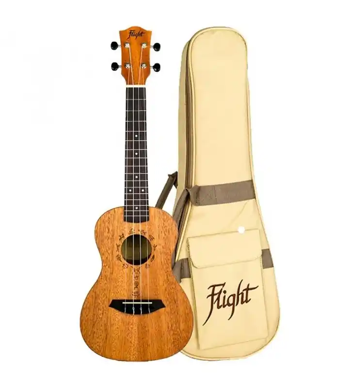 Grootte – Concert, Top – African Mahogany, Back & Sides – African Mahogany, Rosette – Laser (Ki’i Pohaku), Nut & Saddle – Bone, Strings – Aquila Super Nylgut , Side Dots – Ja, Fretboard Inlays – Dots, hoes – Inclusief.