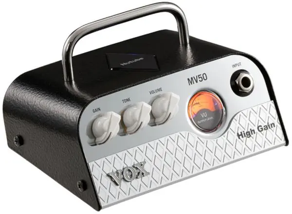Equipped with a Nutube, the revolutionary new mini vacuum tube, the VOX MV50 Hi Gain 50-watts guitar amp head is optimized for high gain.The MV50 Series from VOX represents a truly innovative approach to guitar amplification. This little monster weighs in at only one pound but boasts a tremendous 50 Watts of power and produces serious guitar tone that rivals the sound of your favorite tube amp. The analog preamp circuit preserves the richness and warmth of your guitar’s natural sound, while an innovative Class D power amp provides enough volume for any environment.