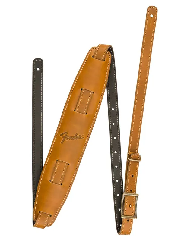 Featuring smooth, premium top leather with a soft padded leather backing, the Mustang™ saddle strap is a modern interpretation of our classic vintage Fender design. Full-grain, rich leather undertones ensure this strap only gets better with time while the fixed brass metal keeper secures your straps tail so it doesn’t hang once adjusted. Available in both standard and long lengths to fit players of any stature.