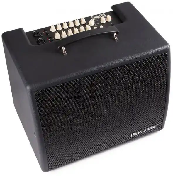 Powerful, light and compact, with an adjustable tilt-back stand to project the sound for any performance, BLACKSTAR Sonnet 120 (Black) acoustic guitar / microphone combo amplifies the natural response of your acoustic instrument capturing every nuance of its tone and your performance.Each model has two independent channels, microphone and instrument, with their own EQ and reverb level settings and a host of player-friendly features such as XLR and USB outputs. The addition of Bluetooth audio playback makes them the ideal solution for solo performers or duos. Acoustic minded High Pass Filter and Brilliance controls to adjust the crucial body resonance and piezo high-end of acoustic instruments. Modern performance versatility with instrument and microphone channels, MP3/line input and Bluetooth audio. Attach your Sonnet 60 or Sonnet 120 to a standard 35mm P.A. stand using the SA-2 stand adaptor (Sold separately) The FS-17 Footswitch facilitates the option to mute and switch reverb on/off.