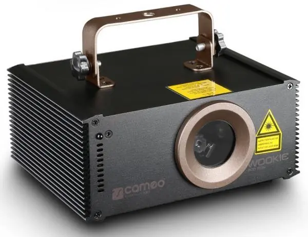 the WOOKIE 200 RGY has a power of 200 mW; -Equipped with diode lasers and DPSS for color red, green and yellow rays with a diameter of 3 mm and an extremely small divergence (1 mrad only) for a very large range.Featuring 32 spectacular presets and 5 Kpps stepper motors for 60-degree scanning, the Wookie Series lasers deliver dynamic, brilliant animations with sharply cut and precise rays. They can be controlled via DMX, in 3-channel and 9-channel mode or by music, thanks to an integrated microphone of adjustable sensitivity, and can also be used in Master, Slave or Standalone mode.Lightweight aluminum case. they incorporate 3-pin DMX connectors, an IEC mains socket and a transport and mounting adjustment bracket. A key switch prevents unauthorized use, and the very bright display, completed with 4 user keys, allows easy manual adjustment. All Wookie lasers come with an easy-to-use infrared remote control.For use Dj, Club, Discomobile.