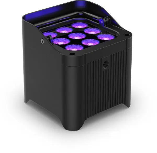 The Chauvet Dj freedom PAR h9 IP is an outdoor wireless projector.The freedom to enjoy 100% true wireless lighting, battery-powered, hex color, outdoors is even better! The innovative built-in D-Fi transmitter for wireless DMX control is not the only thing present in the Freedom Par H9 IP with hex colors (RGBAW+UV). This lamp also has a built-in RF receiver for wireless control using the optional RFC or RFC-XL remotes. Its IP rating and robust housing repel Mother Nature for temporary outdoor use, giving you Freedom lighting power no matter the weather. A more compact size and new secondary optics allow for a perfect color blend with virtually no artifacts. The OLED screen makes it easy to adjust device settings and adjustable runtimes ensure the device lasts throughout almost any event.