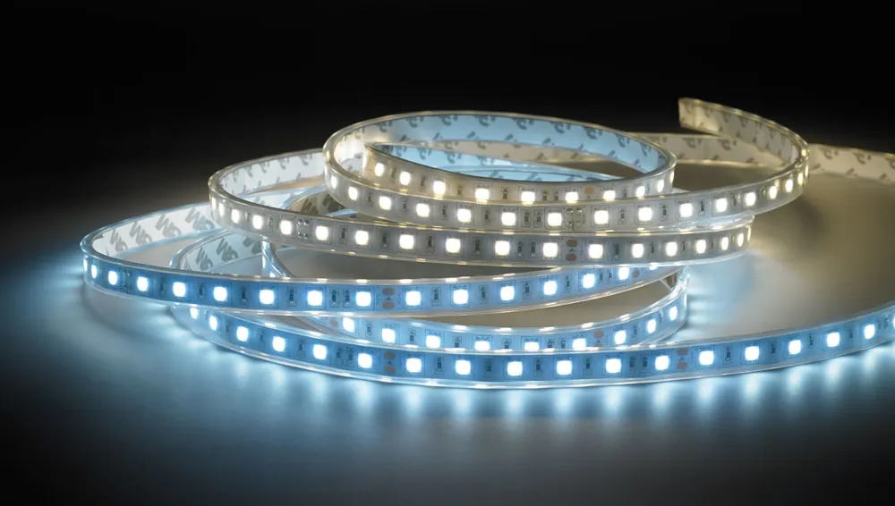 60 LEDs/ koel helder witte ledstrip met een siliconen beschermhuls.