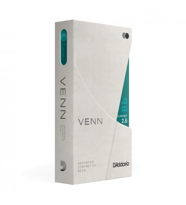 Venn synthetisch riet Bb klarinet 3.5 D’Addario VENN: een geavanceerd synthetisch riet gemaakt van polymeervezels, hars en natuurlijke rietelementen. Ontworpen om spelers de voordelen van synthetische rieten te geven zonder afbreuk te doen aan het geluid en de bespeelbaarheid van rieten.