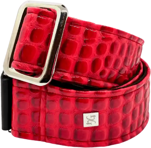 The Aussie Gator collection from Get’m Get’m features stunning 3D embossed faux leather with an alligator texture. Available in a variety of colorful finishes with multiple tones, each strap is unique, with small variations in texture and hue depending on where the cut falls. These luxurious and durable fabrics evoke luxury.Aussie Gator straps boast a 3D embossed synthetic leather coating. Each finish is sumptuous, glossy, with multiple shades. Due to the multiple color tones and varied texture of the embossed material, each strap is unique and exhibits finish variations. The Dragon Red has shades ranging from vivid fire red to deep blood red. With fully adjustable lengths up to 165 cm, these straps are perfect for guitarists of all sizes! Their welded metal accessories with bright nickel-plated finish are free from heavy metals and harmful substances.