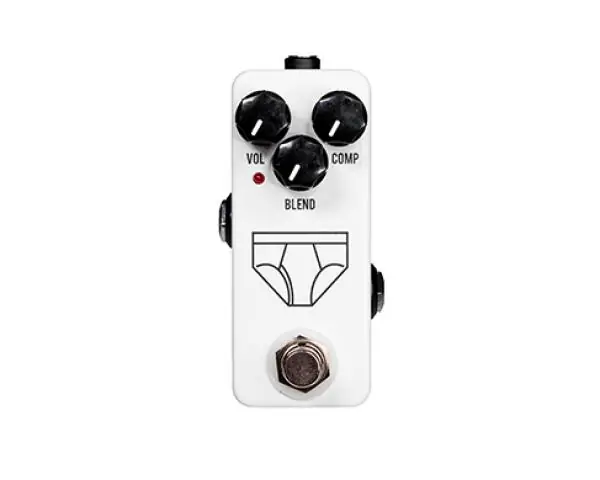 The Whitey Tighty is a FET compressor that has three simple controls: Volume, Compression, and Blend. The Volume control gives you the ability to set your volume at unity gain or slightly boosted to make up for any perceived loss from the compression. The Compression knob controls the amount of compression for everything from a subtle smoothing of your tone to a pleasing squash that’s perfect for country, blues, pop, and rock. Use the Blend knob to dial in the right amount of clean tone along with your compressed signal. This allows you to retain some of the natural feel of your clean tone while giving you the studio-quality compression that brings your sound to the next level.