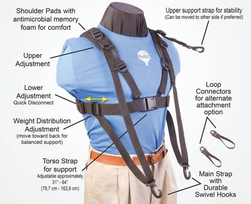 Neotech draagharnas voor tubaDraagkoord voor tuba, met high-tech memory schuimvullingVerschillende instellingsoptiesBrengt de tuba in een goed gebalanceerde speelpositie.