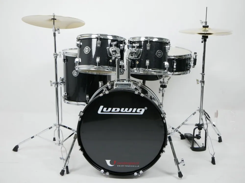 Ludwig drumstel model Accent Fuse 5 dlg zwartFuse: 14×20 Bass Drum, 14×14 Floor Tom, 9×12 Tom Tom, 8×10 Tom Tom, and 5×14 Snare DrumIncl. hardware, krukje en bekkensetHoutsoort 5 lagen Hardhout