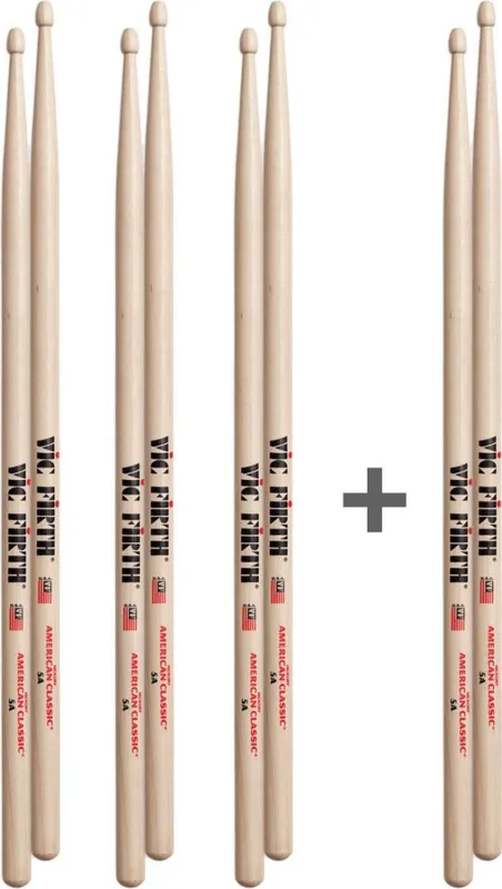 Vic Firth drumstokken, American Classic Hickory, Houten tip 3 + 1 gratis