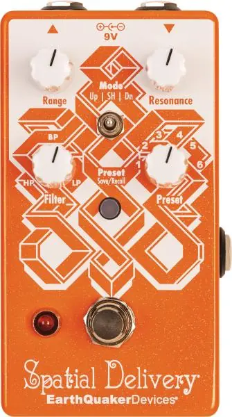 We proudly present the new and improved Spatial Delivery Envelope Filter! We took the already cosmic, original Spatial Delivery and added six available preset slots for you to store your preferred settings – whether they be dissonant sweeps, rhythmic auto-wah frequencies, oscillating robot gibberish or honestly whatever filtered frequency fun you want. Even the expression jack assignment can be saved and recalled in any of the slots so that the signature sounds you dial in are readily available with a quick tap of the switch. Save your settings confidently on the go thanks to the two modes indicated by the LED Save/Recall switch. And of course, for all of you Spatial Delivery diehards, all the familiar features of the original are still in place. This baby has three modes with the switchable Up Sweep, Down Sweep, and Sample & Hold functions, along with Range, Resonance and Filter controls. Get some wild filter sweeps with the Up and Down modes and adjust the Range to control the sensitivity and reaction time of the envelope, which alters the width of the frequency sweep. In the Sample & Hold mode, the filter is controlled by random voltage and the Range controls the speed. The filter can be crossfaded between high pass, band pass and low pass for a wide variety of voices. The Resonance control goes from zero to the brink of oscillation and adds more body and ring to the filter voice.