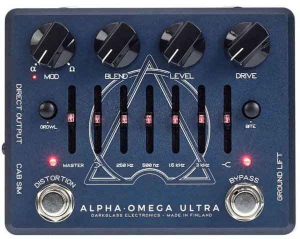 The DARKGLASS Alpha · Omega Ultra is a heavily versatile bass preamplifier / distortion pedal for bass created by the Finnish company : with its two distinct distortion circuits (Alpha and Omega), extremely high dynamic range, six-band active graphic EQ, dedicated headphone output and balanced direct output with switchable digital impulse-response cabinet emulation make for an incredibly complete tool for the modern bass player.