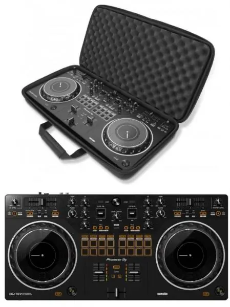 The Pioneer DJ DDJ-REV1 is a DJ controller with a DJC REV1 carrying case from Pioneer DJ.The DDJ-REV series is a new line of DJ controllers with a layout that mirrors that of a professional DJM-S mixer and PLX vinyl decks, with specialized features for scratch and open format DJs. For the first time ever on a Pioneer DJ controller, the tempo sliders have been moved to the top of the decks, and turned horizontally to recall PLX vinyl decks set up in a battle-style configuration. The Performance Pads have been placed in the mixer section with the effects levers, exactly where they are on the DJM-S series mixers, so you can aggressively change the sound during your sets.You’ll have plenty of room to experiment with different mixing techniques with this airy control layout, and you’ll love scratching on the jogs, which are significantly larger than those on previous controllers in the same line. If you’re thinking about getting into mix and scratch competitions-and you want to stream your sets as well-the DDJ-REV1 is the perfect device to get started.You can have fun right away and easily scratch your music with the Tracking Scratch feature. This handy feature automatically returns the song to the cue point when you move the jog back or remove your hand, so you don’t have to use the crossfader or worry about returning the jog to the starting point of your scratch. Simply choose the Scratch Crossfader Cuts pattern you want to use by pressing the corresponding Performance Pad and push the jog forward to scratch. You can also use the controller’s Performance Pads to instantly trigger your favorite samples or songs that you’ve previously loaded into Serato DJ Lite’s Scratch Bank-which was previously only available in Serato DJ Pro-and, with the Deck 3/4 control, you can play sounds from all 4 tracks of the software. When you want to stream your sets to your friends and followers on social networks, you can easily integrate lyrics and vocals by plugging a microphone into the controller. There’s no need for an external sound card or a separate mixer-the sound is transmitted directly to your laptop and streamed.To use the DDJ-REV1 with Serato DJ Lite, download the latest version of the software for free.
