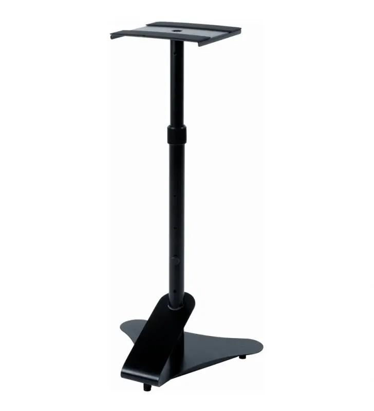 Deze in hoogte verstelbare Near Field-monitorstandaard is perfect geschikt voor thuis-, project- of professionele opnamestudio’s.De stand is gemaakt van een volledig stalen, booggelaste constructie, dus geen vezels of spaanplaat!De stevige metalen bovenplaat biedt stabiele en veilige ondersteuning tot max. 57kg.Het ontwerp is aantrekkelijk en voorzien van een door QuikLok gepatenteerd ontwerp met kabelbeheer.Krasbestendig, aangebakken, niet-reflecterend, zwart geëmailleerde afwerking.