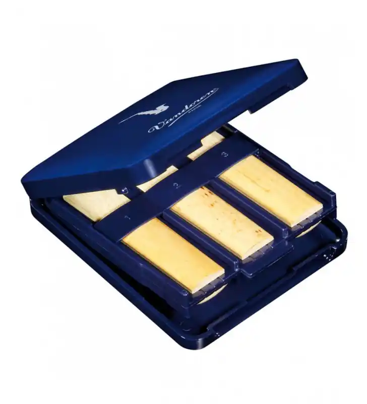 elegante blauwe opbergdoos voor klarinet- of sopraansaxofoonrieten..• ieder opbergvakje is genummerd om de boel georganiseerd te houden• met groeven voor een goede luchtcirculatie• handzaam formaat zodat het in uw zak of koffer past