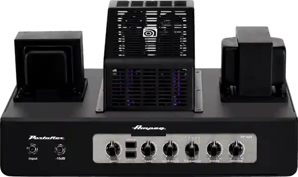 Bass amp head AMPEG Pf-50t. The legendary tone and portability of the all-tube Ampeg Portaflex amplifiers is faithfully reproduced in the PF-50T. This all-tube Portaflex head provides a harmonically rich and studio-worthy 50 watts of pure Ampeg tone to satisfy the most discerning bass player. Featur ing simple user-adjustable bias adjustment for easy tube replacement and pre-amp and transformer balanced direct outs for maximum versatility. Plus, no speaker load is required for silent recording or even use as a dedicated tube DI. Pair it with the PF-112HLF for the ultimate compact all-tube bass rig.