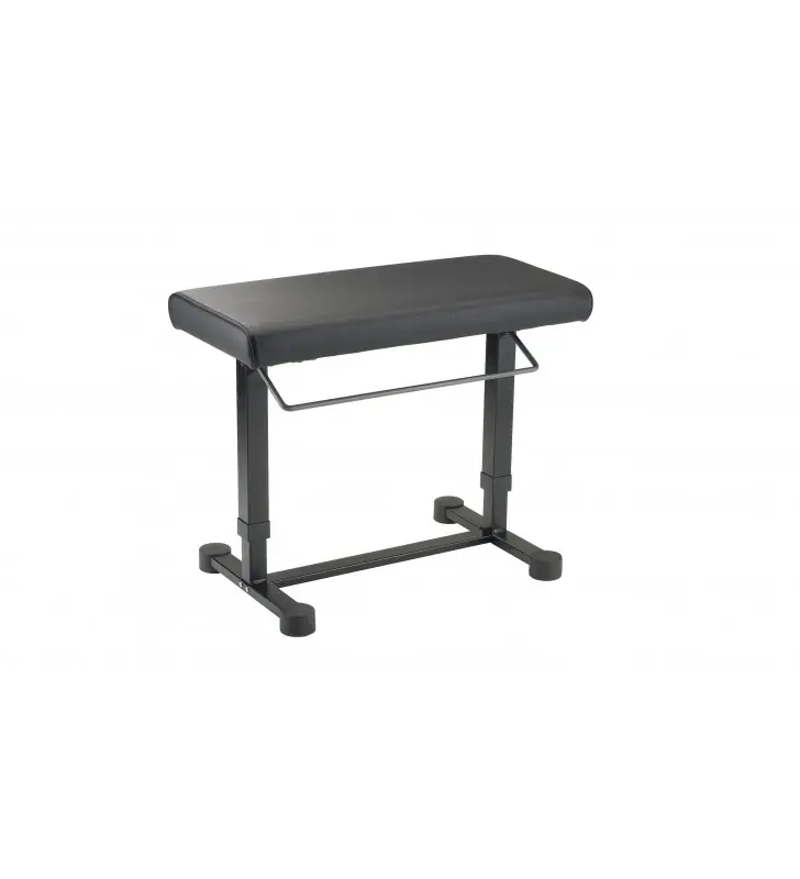 Deze geavanceerde pianobank biedt de pianist pure comfort. De ingebouwde pneumatische veren staan U toe om de hoogte van de bank aan te passen terwijl U comfortabel zit. Uw gewenste zitpositie kan in een oogwenk gevonden worden met de makkelijk te gebruiken instelhandgreep. De compacte stalen constructie en grote ronde vloerbeschermers maken deze aantrekkelijk uitgevoerde bank extreem stabiel. Het uitstekende zitcomfort wordt bereikt door een slijtvaste lederen zitting voor een aangenaam en ontspannen zit tijdens het piano spelen.Highlites: