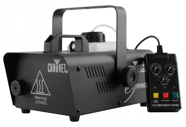 The DJ Hurricane 1200 is a powerful portable smoke machine.Hurricane 1200 is a powerful portable smoke machine that brings your light show to life with thick fog. The included remote control controls smoke output for precise performance After the initial heating time, the Hurricane 1200 is always ready to emit smoke on demand. The manual smoke button allows you to control everything easily and the LED lighted tank allows for better operation and safety, indicating the status of the heating system and fluid levels. An advanced liquid sensor automatically cuts the machine off to prevent the pump from overheating. The machine offers ultra-fast heating time for fast installation and residue-free water-based smoke.