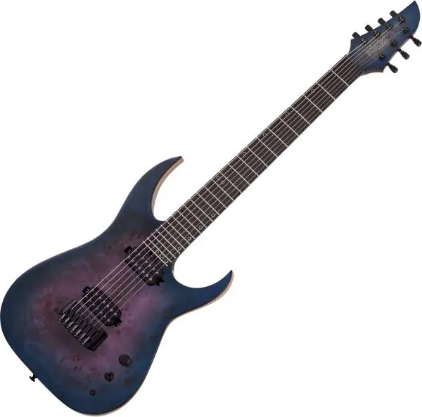 SCHECTER Keith Merrow KM-7 MK-III Artist (303) is a signature model 7-string baritone solid body electric guitar featuring Swamp Ash/flame Maple body, neck-thru construction, 24 frets Ebony fingerboard, Fishman Fluence Keith Merrow Custom Humbucker (Alnico V magnets, 3 voicings) and Hipshot bridge and tuners. A splendid and versatile Metal guitar.