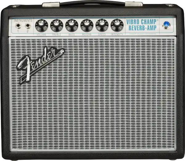 The ’68 Customs have become an extremely popular amp series for guitarists who love classic Fender sounds along with toneful modifications that resonate with today’s players.At just 5 watts, the original Vibro Champ® was famous for classic Fender tremolo, tube sparkle and killer grind at a reasonable level. The FENDER ’68 Custom Vibro Champ Reverb (2279006000) improves on this classic amp by adding a hall reverb and using a larger 10″ speaker for increased low end. These additions make this little wonder perfect for rehearsal, home recording and even small gigs. Amplifier comes with fitted cover. Optional 2-Button Vintage Style (P/N: 0994058000) available.