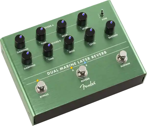 Fender and Reverb – name a more iconic musical duo. Fender’s Dual Marine Layer allows you to add even more dimension to your sonic arsenal. Featuring two independent footswitchable settings, three unique reverb algorithms allow the user to create multiple soundscapes. The sustain switch generates massive atmospheric creations for an out-of-this-world tonal experience.Designed by Fender’s in-house tone gurus, the Dual Marine Layer is an all-original Fender circuit. The chassis is crafted from lightweight, durable anodized aluminum, and the LED-backlit knobs show your control settings on a dark stage at a glance.