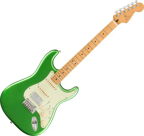 Fusing classic Fender design with player-centric features and exciting new finishes, the FENDER Player Plus Stratocaster HSS (0147322376) solid body electric guitar delivers superb playability and unmistakable style.The powerful Player Plus humbucking pickup delivers the perfect balance of gain and definition, while the Player Plus Noiseless Strat® pickups are bright and touch sensitive, offering classic Strat tone without hum. A push-pull tone controls activate coil-split mode for the humbucking pickup, delivering crystal-clear single-coil tones. The silky satin Modern “C” Player Plus Strat® neck fits your hand like a glove, with smooth rolled edges for supreme comfort. The 12” radius fingerboard and 22 medium jumbo frets facilitate fluid leads and choke free bends. Smooth and responsive, the 2-point tremolo provides classic vibrato effects, while the locking tuners provide rock-solid tuning and make string changes quick and easy. With classic Fender style, advanced features and stunning new finishes, the Player Plus Stratocaster HSS is the perfect tool to spark your creativity and stand out from the crowd.Fretboard is made of Maple or Pau Ferro, a sustainable tonewood quite similar to Rosewood, but with some more brightness (somewhere between Rosewood, Maple and Ebony).