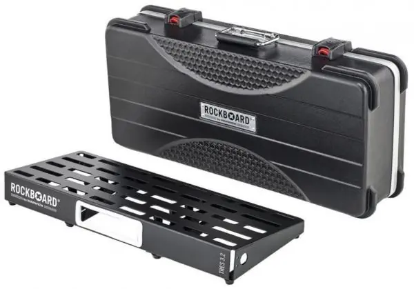 The ROCKBOARD TRES 3.2 A With Professional ABS Case is based on the innovations of our completely re-designed pedalboard series and incorporates a lot of added features, based on suggestions from musicians all around the world.The ingenious, lightweight, rigid and rugged construction, based on only one sheet of cold-rolled aluminum and U-shaped vertical support braces for additional stability, as well as the innovative slot-based design lets you hide cables easily for a neat and tidy design, all stay the same.Added and improved features include an extended slot grid for perfect fit of our new optional QuickMount plates, added mounting positions for the Optional RockBoard® The Tray – Universal Power Supply Mounting Solution (QUAD 4.2, CINQUE 5.2, 5.3 and 5.4), second MOD mounting slots for RockBoard® CINQUE 5.3 and 5.4, lighter ABS pedalboard cases and improve pedalboard bags.The ROCKBOARD Professional ABS Case for RockBoard Pedalboard is perfect matched to the respective pedalboard (not available for DUO 2.0) and the complement for the protection during the transport.The lightweight ABS shell has a unique honeycomb structure for increased stability. The lid is removable and fits like a hood over the pedalboard. Thanks to the flat lower shell, the pedalboard can be easily and quickly removed from the case. An all-around weld aluminum profile securely connects both elements and reduces twisting. All Professional ABS Pedalboard Cases are lockable (international TSA 2 locks from TRES 3.2 to CINQUE 5.4) and have integrated wheels (from CINQUE 5.2 to 5.4) that make transport safer and simple.