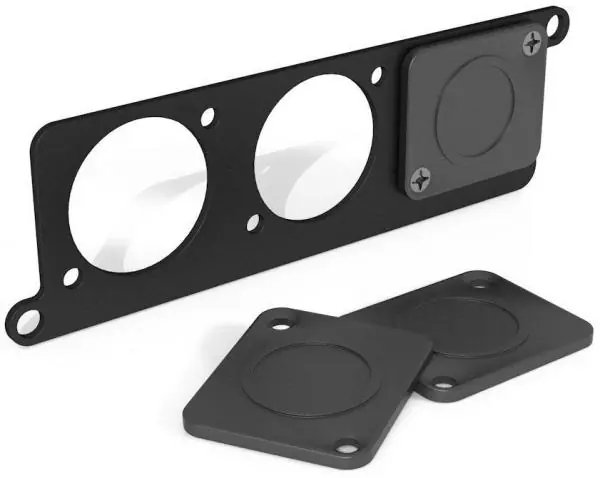 This three port TEMPLE AUDIO DESIGNS Mini Module Punched Plate allows you to install up to three “D style” connectors into any of the side panel Mini Module spaces. Ideal for Neutrik locking TRS connectors, XLR, USB, Midi and other accessories.