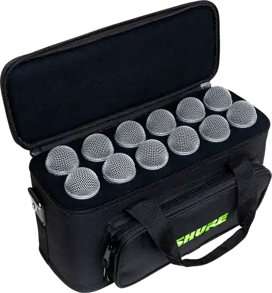 The Shure SH-MICBAG12 is a padded bag that can hold up to 12 microphones for gigs or recording sessions.Made of durable 600D nylon, this bag is weather-resistant and provides excellent protection for your mics. The interior of the bag features a tray with twelve individual slots to keep your microphones separated and secure during transport.Additionally, the bag features a separate compartment for small essentials and an exterior compartment for cables and other accessories. You can carry the SH-MICBAG12 using the padded handle or the removable shoulder strap, depending on your preference.