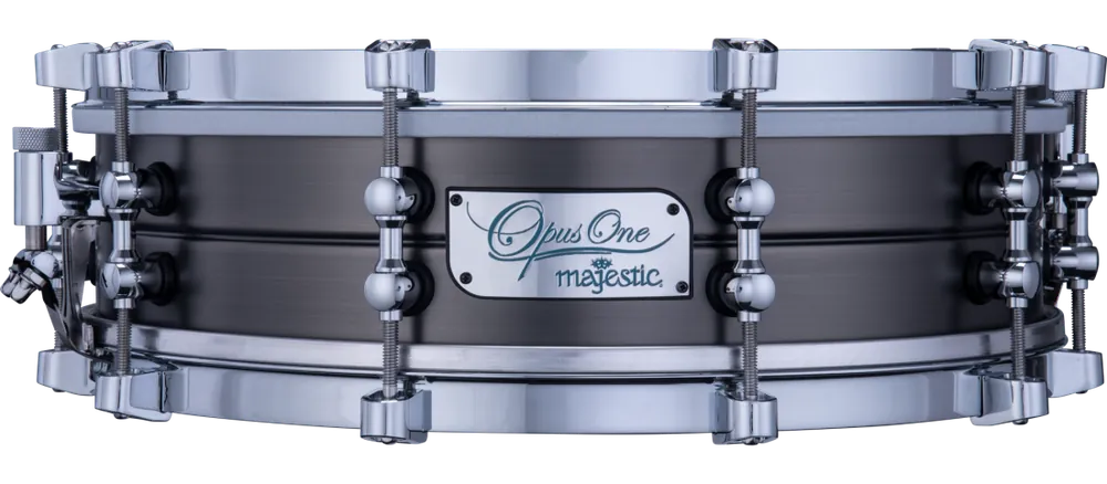 Majestic snaredrum 14″ x 4″ model Opus One brass met chroom hardwareAl meer dan een eeuw is messing het materiaal bij uitstek voor snaredrums. Het zorgt voor extreme helderheid en prestaties in een verscheidenheid aan muzikale omgevingen. De antiek nikkel geborstelde afwerking over een 1.2 mm messing ketel straalt ingetogen elegantie uit, terwijl het de gewenste tonaliteit en gevoeligheid in het uiterste dynamische bereik mogelijk maakt. Elk model van de OPUS ONE Serie heeft zijn eigen unieke set hybride of single Snaarkabels om de gevoeligheid te maximaliseren.Afmeting: 14″ x 4″Ketel: Messing (1,2 mm)Shell-hardware: VerchroomdLagerrand: Binnenste Scherp 45° (beide zijden)Afwerking: Antiek Nikkel GeborsteldHoepel: Enkele flens (messing)Slagvel: Evans Orchestra StaccatoOndervel: Evans 200Snarenspanner: OP-01Snaarkabels: ST16-1401 Uncoated Stainless (5) 0,6 mm kabels & (11) 0,8 mm kabelsDrumdial™ Suggestie: A#, draaiknop 90; Bot: draaiknop 76Frequentieversterker: PFM1440/50Gewicht 4,37 kg.