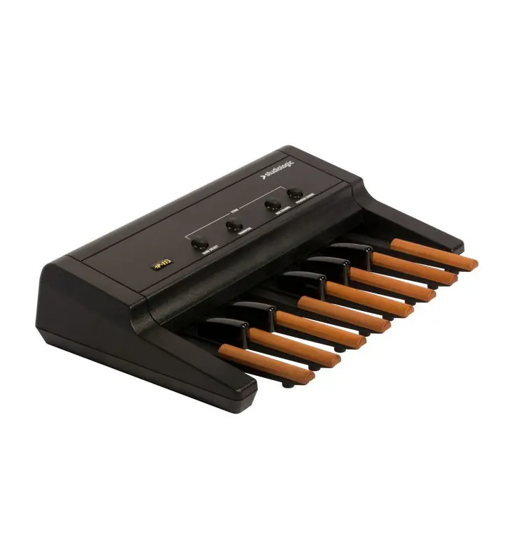 Het MP Pedalboard van studiologic is uitgerust met een overzichtelijk bedieningspaneel, waarmee het MIDI-kanaal, bank select, transpose en MIDI program change zijn in te stellen middels vier grote drukknoppen. Zijn robuuste ontweerp maakt het pedalboard naast de studio of huisklamer ook geschikt voor mobiel gebruik in de oefenruimte en op het podium.Klik HIER voor meer info en de specificaties.