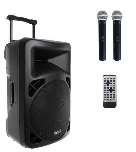 MP3/SD/USB/DIVX/Bluetooth CD player + 2 UHF handheld microphones.The BE 9515 has been updated with a new, modern and neat design. It’s quite difficult to get high power levels and still have great battery life. With the BE 9515 V2, Power Acoustics has integrated an ultra powerful battery to meet this challenge. This new portable sound system is very powerful (300W), complete, compact and can be used for all types of conferences, speeches or presentations.It will be able to accompany you on a large number of performances.
