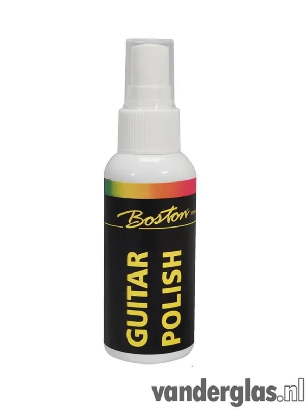 Boston gitaar polish in spray flesjeGitaarpoetsmiddel in spuitfles, 50mlBoston Guitar Polish herstelt en accentueert de glans van je gitaar. Een instrument moet net zo stralen als de speler. Vingerafdrukken en vlekken verdwijnen als sneeuw voor de zon bij gebruik van Boston Guitar Polish en de oorspronkelijke glans van je gitaar keert terug. Boston Guitar Polish wordt geleverd in een handige kleine spuitfles. Na het spuiten van de polish op de lak van de gitaar, gebruik je een microvezeldoek om je gitaar schoon te maken en te polijsten, en je instrument zal er als nieuw uitzien. Boston Guitar Polish kan ook gebruikt worden op gelakte basgitaren en ukeleles.