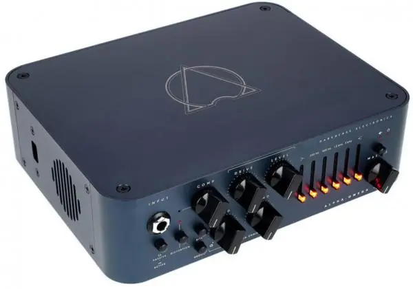 The DARKGLASS ELECTRONICS Alpha·Omega 500 Bass Headis a 500 watts amplifier equipped with an all-analog preamplifier, two distinct distortion circuits (Alpha and Omega), a custom-designed Darkglass high-efficiency class D Module, an ultra-quiet graphic equalizer, and a digital impulse-response cabinet emulator for DI outputs or headphones.