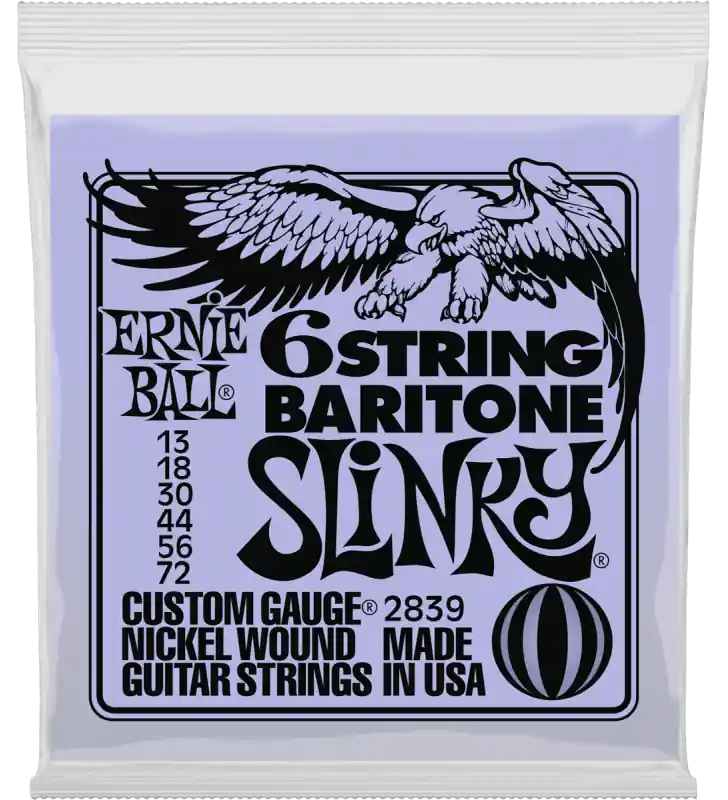 Slinky 6-snarige baritongitaarsnaren met kleine kogeluiteinden, 13-72 gauge