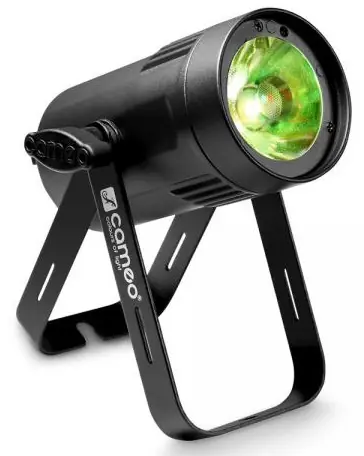 CameoQ-Spot 15is a compact, RDM-compatible projector with 2 different lenses, allowing 3 different starting angles: 4.5 ° / 10 ° / 25 ° It is available in white or in black, and its powerful LED quadricolor (RGBW) with a power of 15 W.It offers a color temperature correction function and a 16 bit resolution, for very accurate colors and an optimized Dimmer.With its 3600 Hz refresh rate for flicker-free operation, the Q-Spot is ideal for use in film or television shooting, and its convection cooling avoids any operating noise.The Q-Spot 15 comes with a convenient infrared remote control, and offers 5 DMX control modes, music control, and Master / Slave or Standalone modes. Other features include a 20 Hz maximum frequency strobe, 4 optimized Dimmer curves and a backlit display with 4 user keys for easy setup.-The metal housing houses DMX 3-point inputs / outputs and a blue / white input / return sector for cascade connection.Versatile model for any use