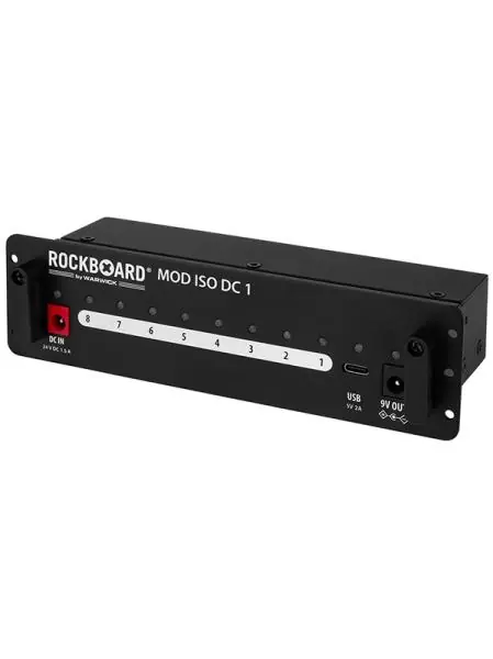 De Power MOD ISO DC 1 is een multi-voeding voor effectpedalen en biedt tot 9 geïsoleerde en sterk gefilterde 9V DC elektrische aansluitingen, evenals een 5V USB-aansluiting. Hij past in een MOD-sleuf op ROCKBOARD pedalboards, maar dankzij de verwijderbare frontplaat kan hij ook worden gebruikt als voeding voor andere pedalboards.
